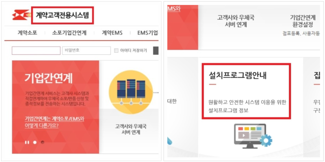 지금 바로 오즈 리포트 뷰어를 다운로드 받아야 하거나 귀찮다면 아래 링크를 확인한다. 우체국 홈페이지를 방문해보면 계약 고객 전용 시스템으로 이동할 수 있다. 여기에서 무료로 오즈 리포트 뷰어를 다운로드 받을 수 있게 서비스를 제공하고 있다. 화면 아래에 있는 설치 프로그램 안내 페이지로 이동을 해보겠다.